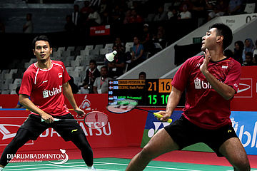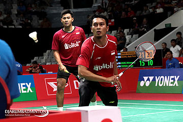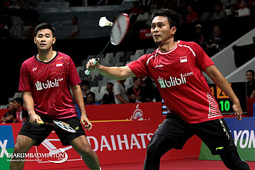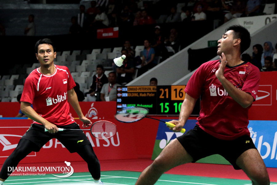 Mohammad Ahsan/Angga Pratama (Indonesia) Menyambut Pengembalian