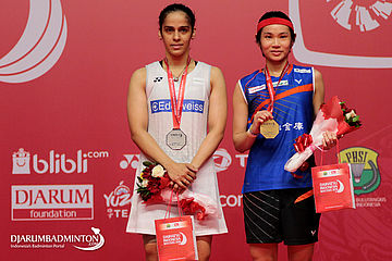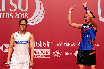 Juara Tunggal Putri Daihatsu Indonesia Masters 2018, Tai Tzu Ying (Kanan) Bersama Runner Up, Saina Nehwal