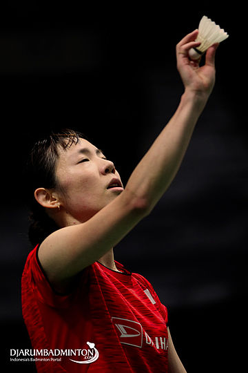 Sayaka Sato (Jepang) Menangkap Shuttlecock