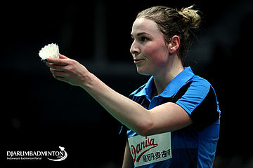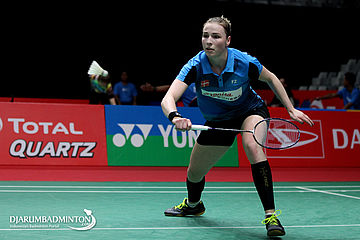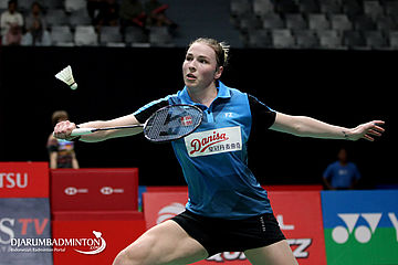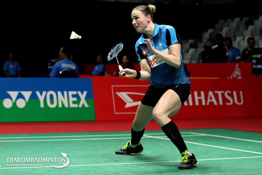 Line Højmark Kjaersfeldt (Denmark) Meminta Pergantian Shuttlecock