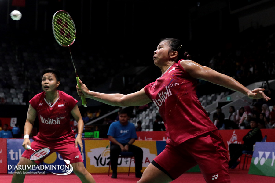 Apriyani Rahayu/Greysia Polii (Indonesia) Menghadang Serangan
