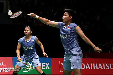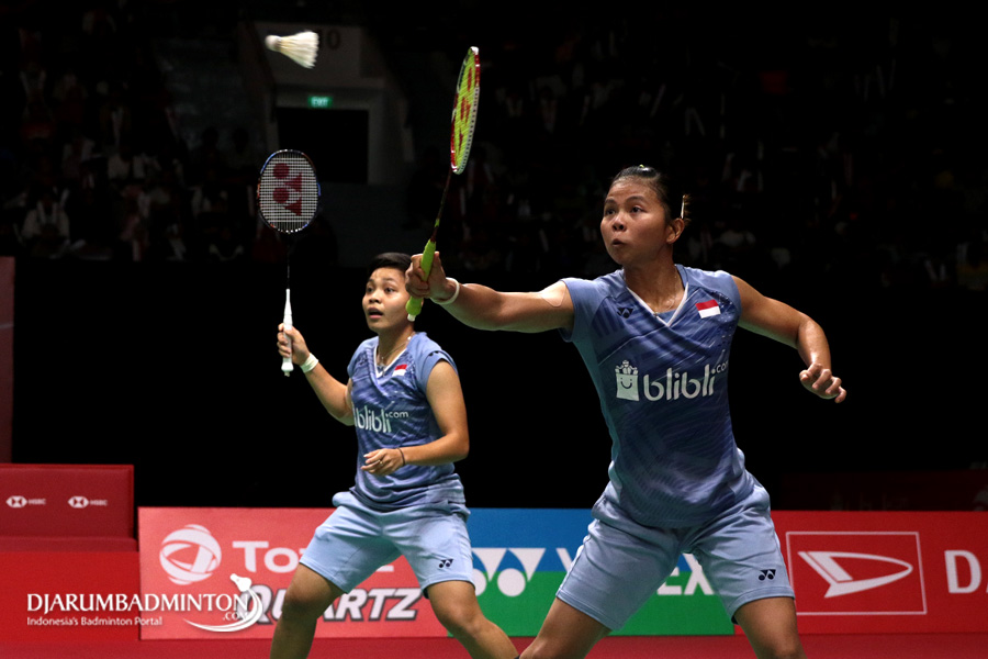 Apriyani Rahayu/Greysia Polii (Indonesia) Menghadang Serangan