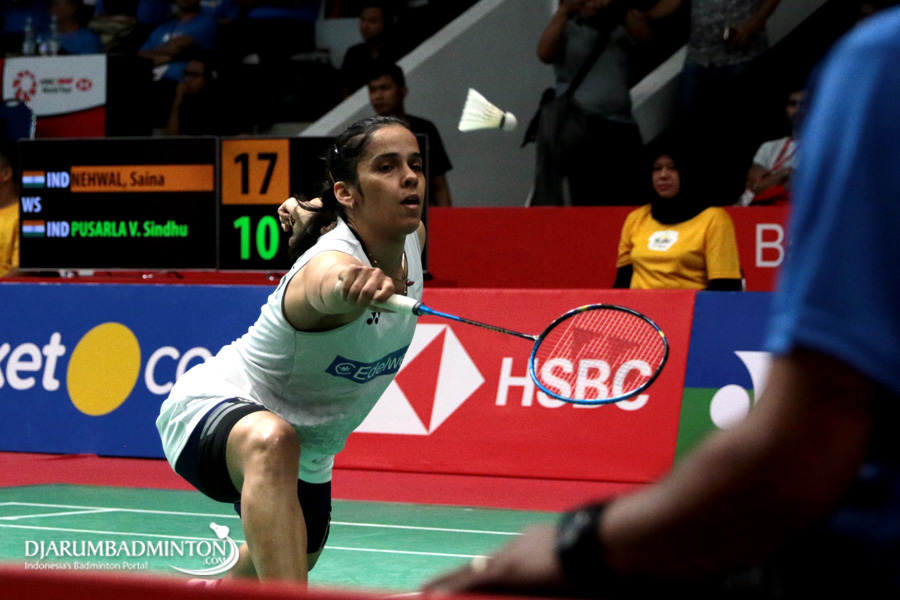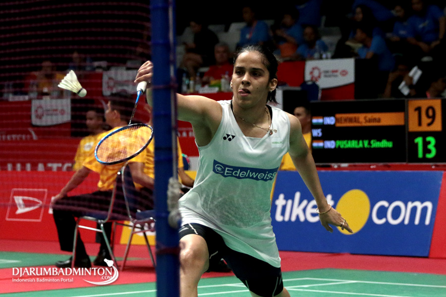 Saina Nehwal (India) Mengembalikan Shuttlecock