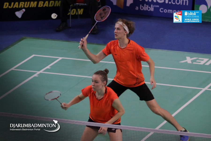 Mikhail Lavrikov/Anastasiia Semenova (Russia) Mengembalikan Shuttlecock