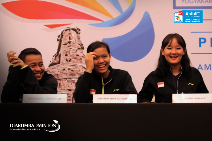 Rehan Naufal K, Siti Fadia S, Agatha Imanuela (Indonesia) Saat Acara Press Conference Blibli.Com Yonex Sunrise World Junior Championships
