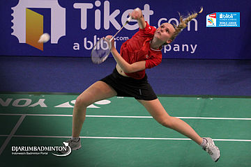 Michelle Skødstrup (Denmark) Melakukan Smash