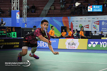 Gatjra Piliang Fiqihilahi (Indonesia) Mengembalikan Shuttlecock