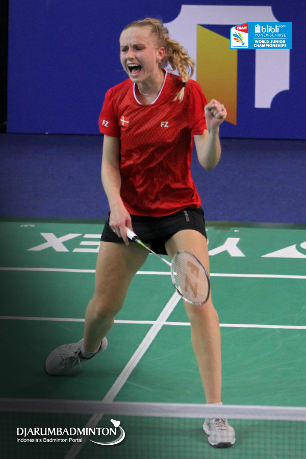 Ekspresi Michelle Skødstrup (Denmark) Ketika Mendapatkan Poin