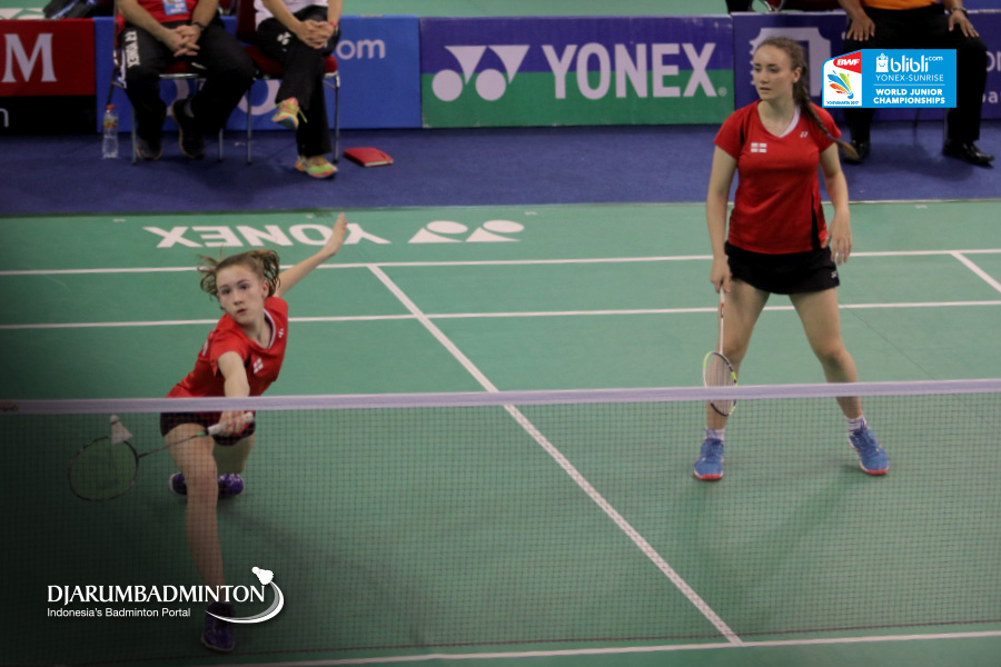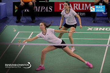 Una Berga/Liana Lencevica (Latvia) Mengembalikan Shuttlecock