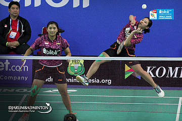 Jauza Fadhila Sugiarto/Ribka Sugiarto (Indonesia) Melakukan Smash
