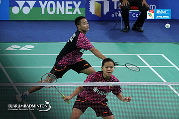 Rehan Naufal K/Siti Fadia S (Indonesia) Mencoba Menggapai Shuttlecock