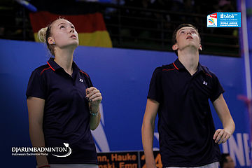 Ekspresi Reka Madarasz/Gergo Pytel (Hungary) Menunggu Jatuhnya Shuttlecock