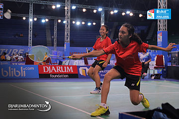 Jessica Gurung/Rasila Maharjan (Nepal) Mengembalikan Shuttlecock