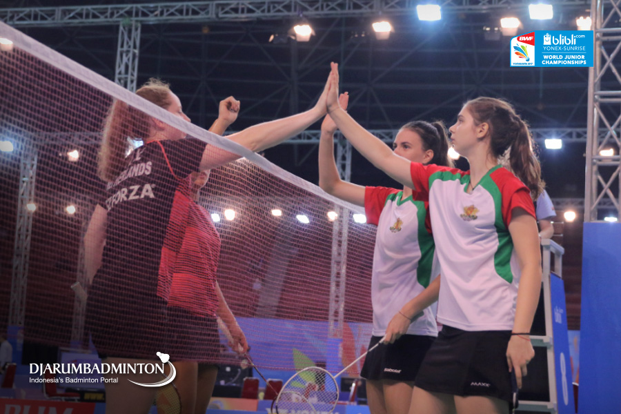 Maria Delcheva/Hristomira Popovska (Bulgaria), Debora Jille/Alyssa Tirtosentono (Netherland) Seusai Bertanding