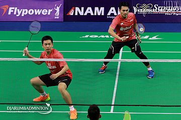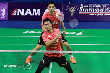 Hendra Setiawan/Mohammad Ahsan (DKI Jakarta/Jawa Tengah) Menahan Serangan