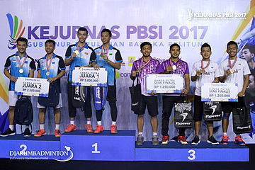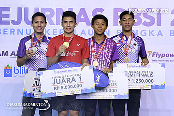 Alfandy Rizki Putra Kasturo/Emanuel Randhy Febryto (DKI Jakarta) Berfoto di Podium Juara