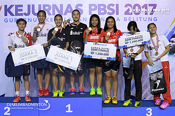 Febby Valencia Dwijayanti Gani/Lisa Ayu Kusumawati (Jawa Tengah) Berfoto Di Podium Juara