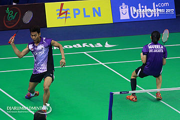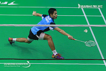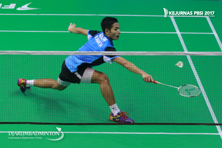 Gatjra Piliang Fiqihilahi Cupu (DKI Jakarta) Berusaha Menjangkau Shuttlecock