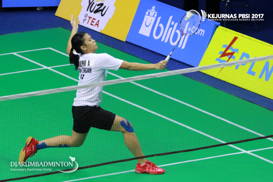 Bening Sri Rahayu (DKI Jakarta) Berusaha Menjangkau Shuttlecock