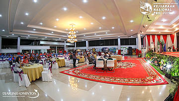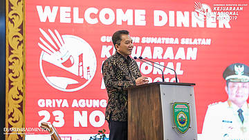 Suasana acara welcome Dinner GUBERNUR SUMATERA SELATAN KEJURNAS PBSI 2019