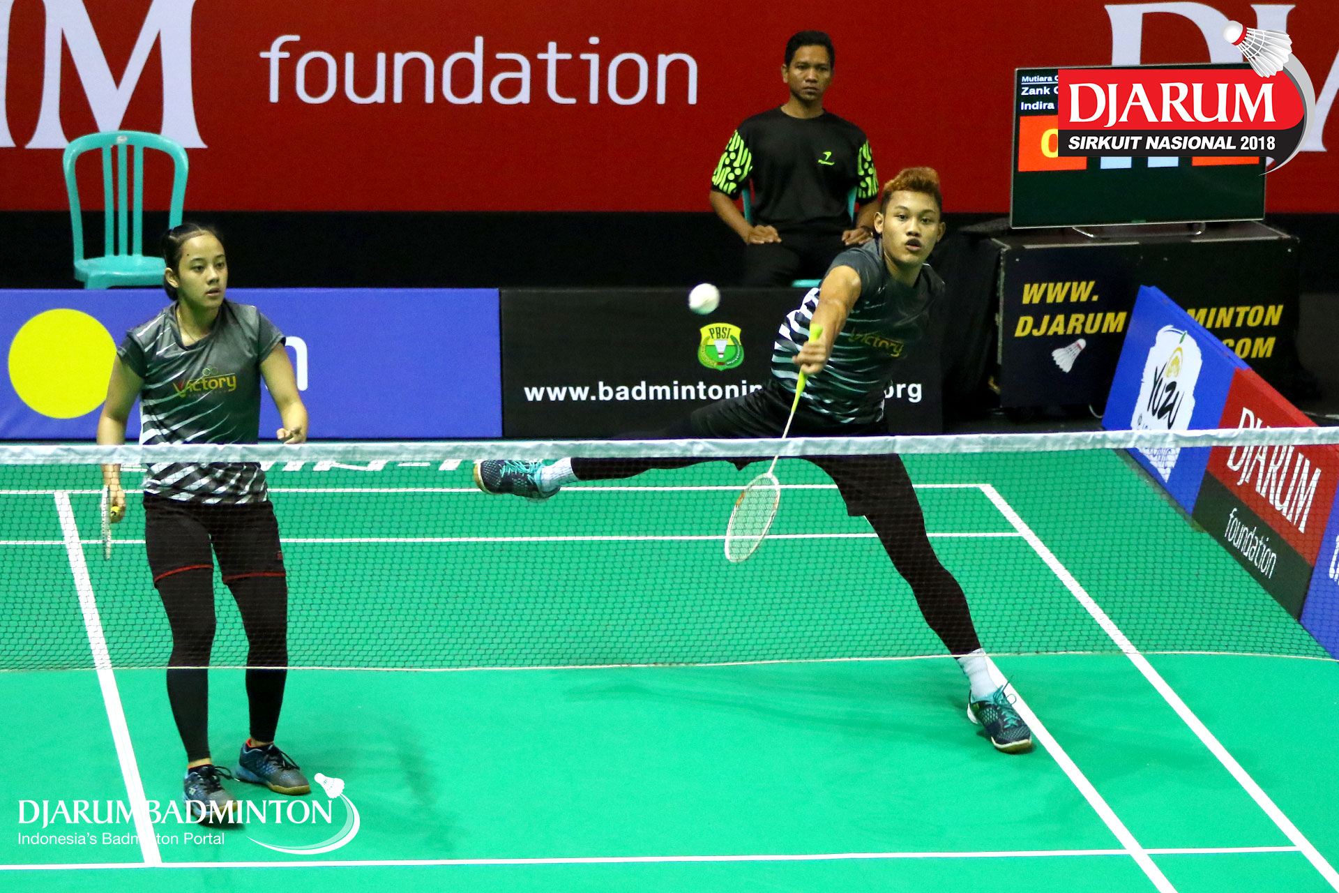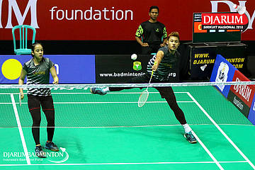 Asyhari Anhar/Inas Hasnaya (PB Victory Bogor, Jaktim) mengembalikan serangan