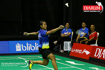 Savira Sandradewi (PB Djarum, Kudus) menyambut pengembalian