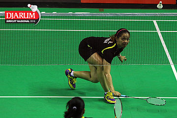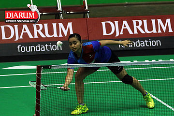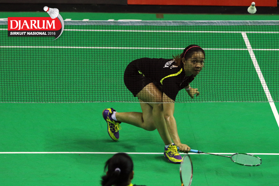 Aprilia Yuswandari (Semen Gresik) mengembalikan shuttlecock