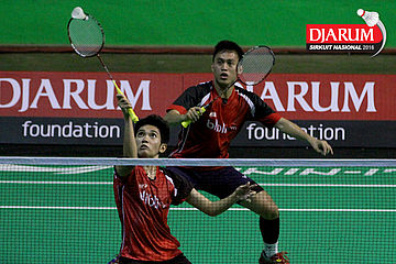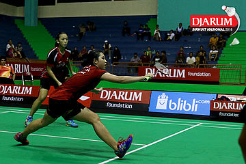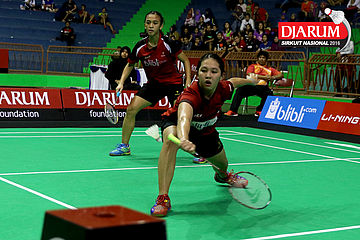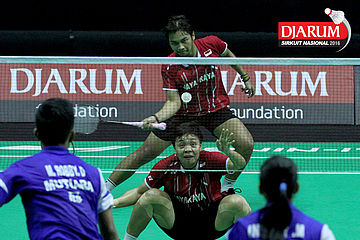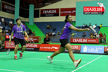Bernadus Bagas K/Indah Cahya Sari (Djarum Kudus) Mengembalikan shuttlecock