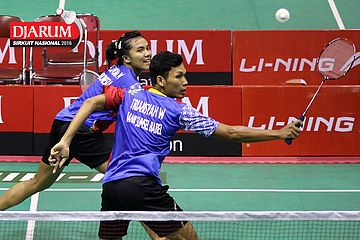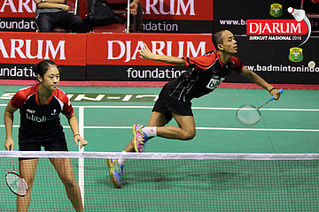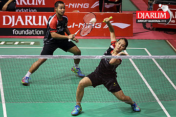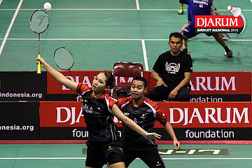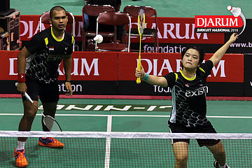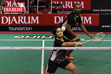 Rizal M. Sofyan/Siti Fadia (Djarum Kudus) Mengembalikan Shuttlecock.