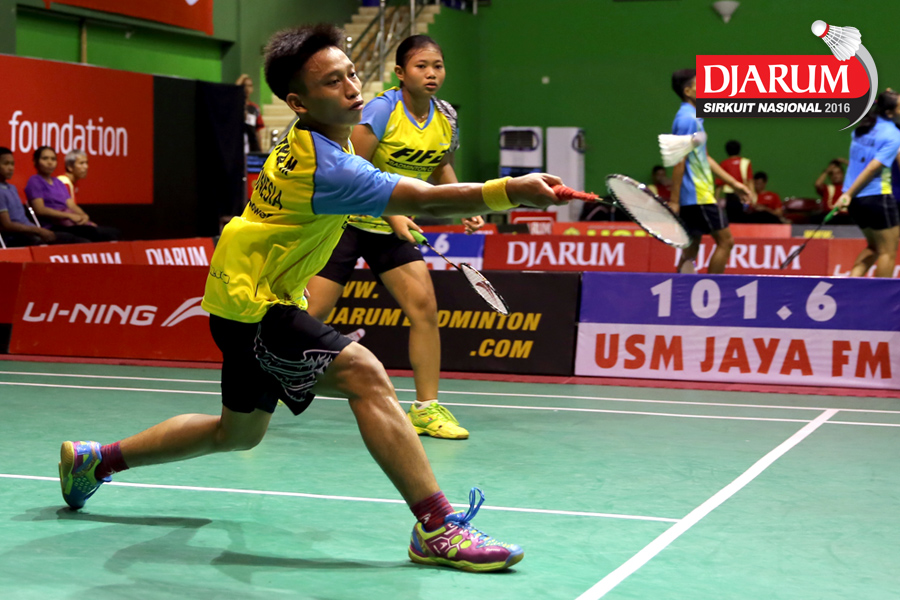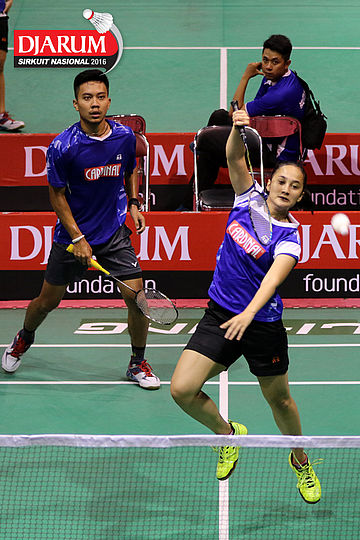 Aditya Muchlis/Annisa Mubarokah (FIFA Badminton) Mengembalikan Shuttlecock.