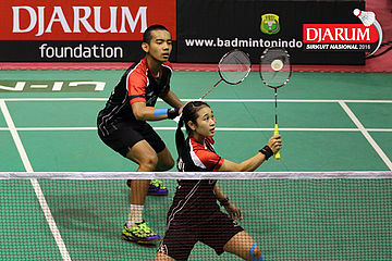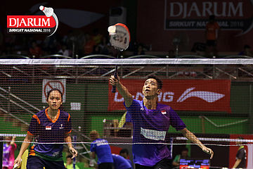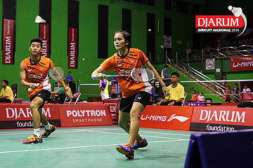 Pramudya Kusumawardana/Lisa Ayu (Djarum Kudus) Mengembalikan Shuttlecock.