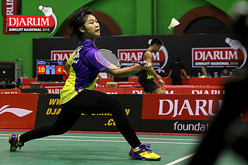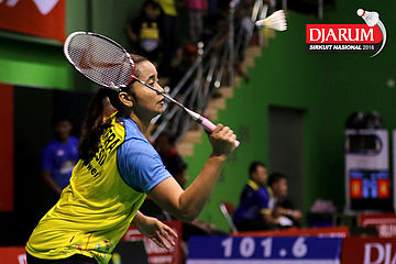 Winda Puji (Fifa Badminton) Mengembalikan Shuttlecock.