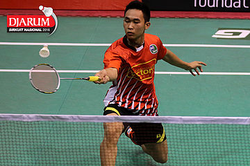 Alamsyah Yunus (JR Enkei) Mengembalikan Shuttlecock.