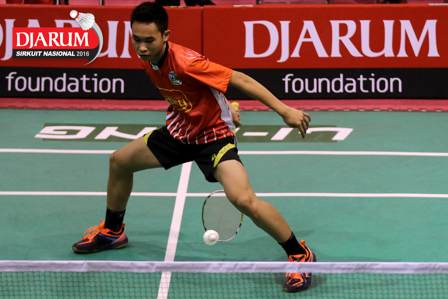 Yosua (Victory Bogor) Mengembalikan Shuttlecock.