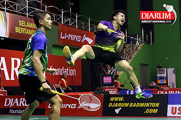 Rehan Naufal/Ribka Sugiarto (Djarum Kudus) Menyambar Pengembalian Tanggung.
