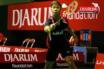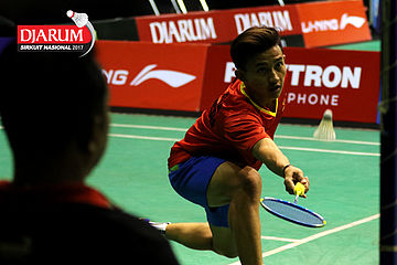 Tri Cahya Suprianto (Djarum Kudus) Mengembalikan Shuttlecock