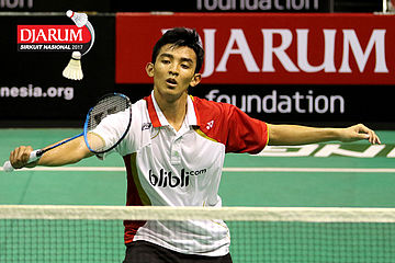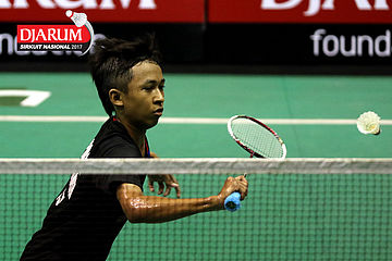 Muhammad Farhan Ananto (Tangkas Intiland) Mengembalikan Shuttlecock