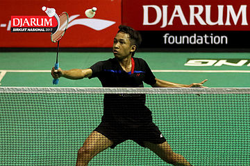 Prayoga Hadi Saputra (Victory Bogor) Mengembalikan Shuttlecock