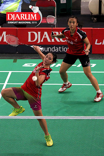 Febriana Dwipuji/Ribka Sugiarto (Djarum Kudus) menyambar pengembalian