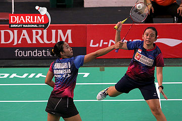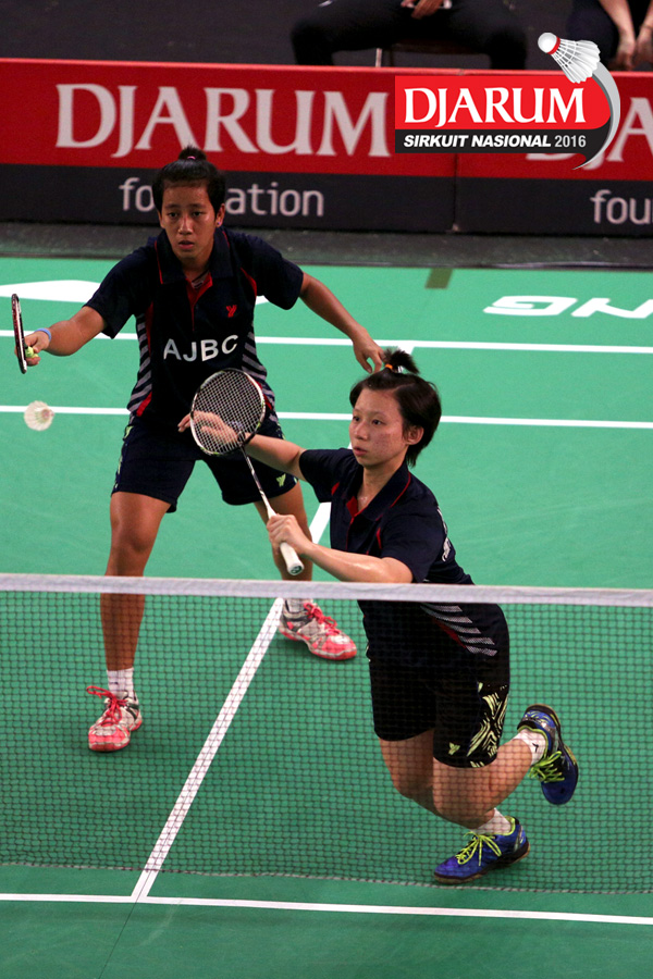 Ririn Amelia/Ristya Ayu (Djarum Kudus) menghadang serangan