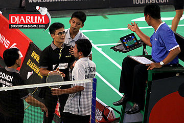 Ofisial (Pusdiklat Telkom Jabar) melakukan protes kepada umpire