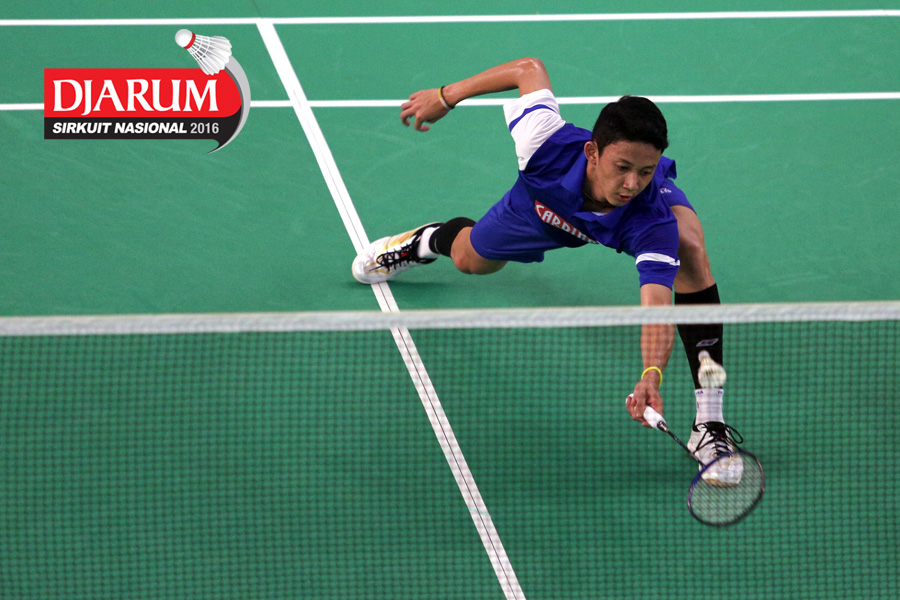 Evert Sukamta (Tangkas) mengembalikan shuttlecock