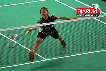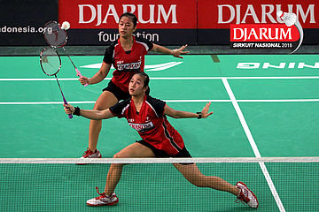Lisa Ayu/Vanadia Prasana (Djarum Kudus) mengembalikan shuttlecock