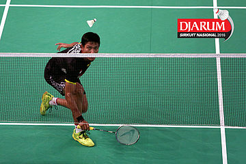 Panji Akbar (ISTC Sukabumi) mengembalikan shuttlecock