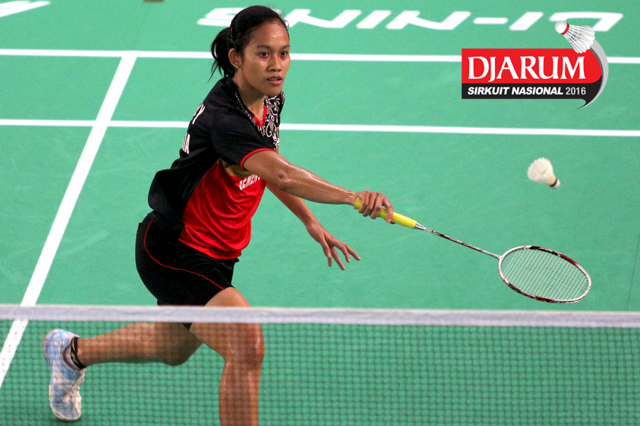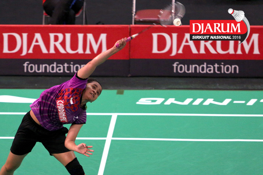 Febby Angguni (Tjakrindo Masters) mengembalikan shuttlecock