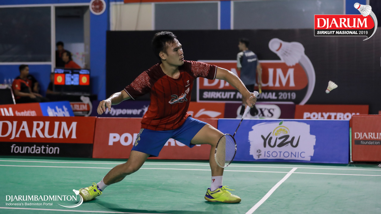 Muhammad Amin Faisal (Berkat Abadi, Banjar) bersiap menyambut shuttlecock