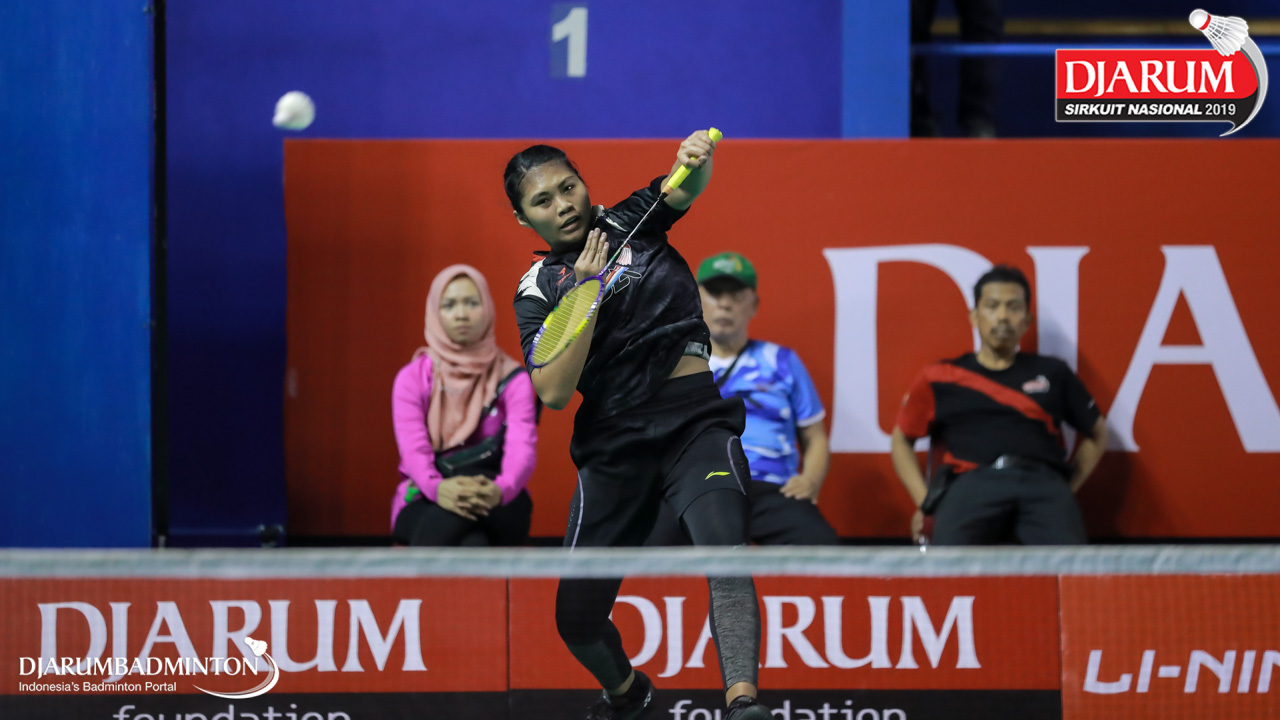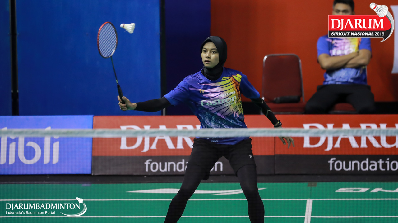 Dinar Dyah Ayustine (Pertamina Fastron, Jakut) melepaskan serangan