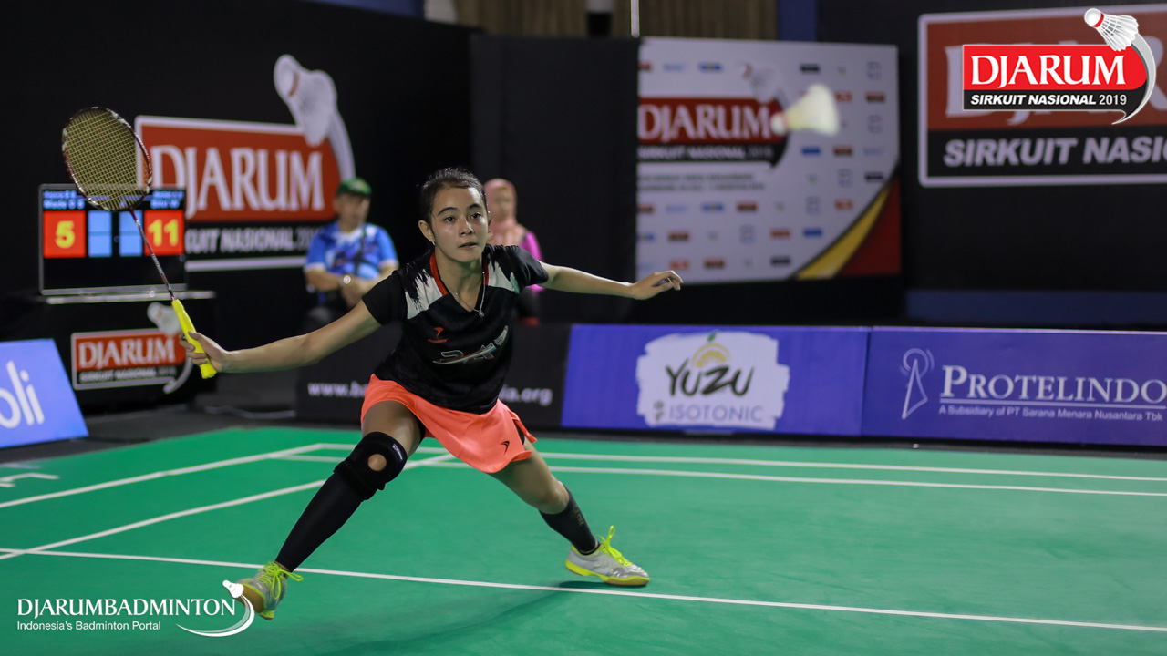 Made Deya Surya Saraswati (Kejora Badung Bali) menggapai shuttlecock
