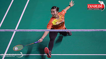 Ni Made Pranita Sulistya Devi (Exist Badminton Club) menggapai shuttlecock