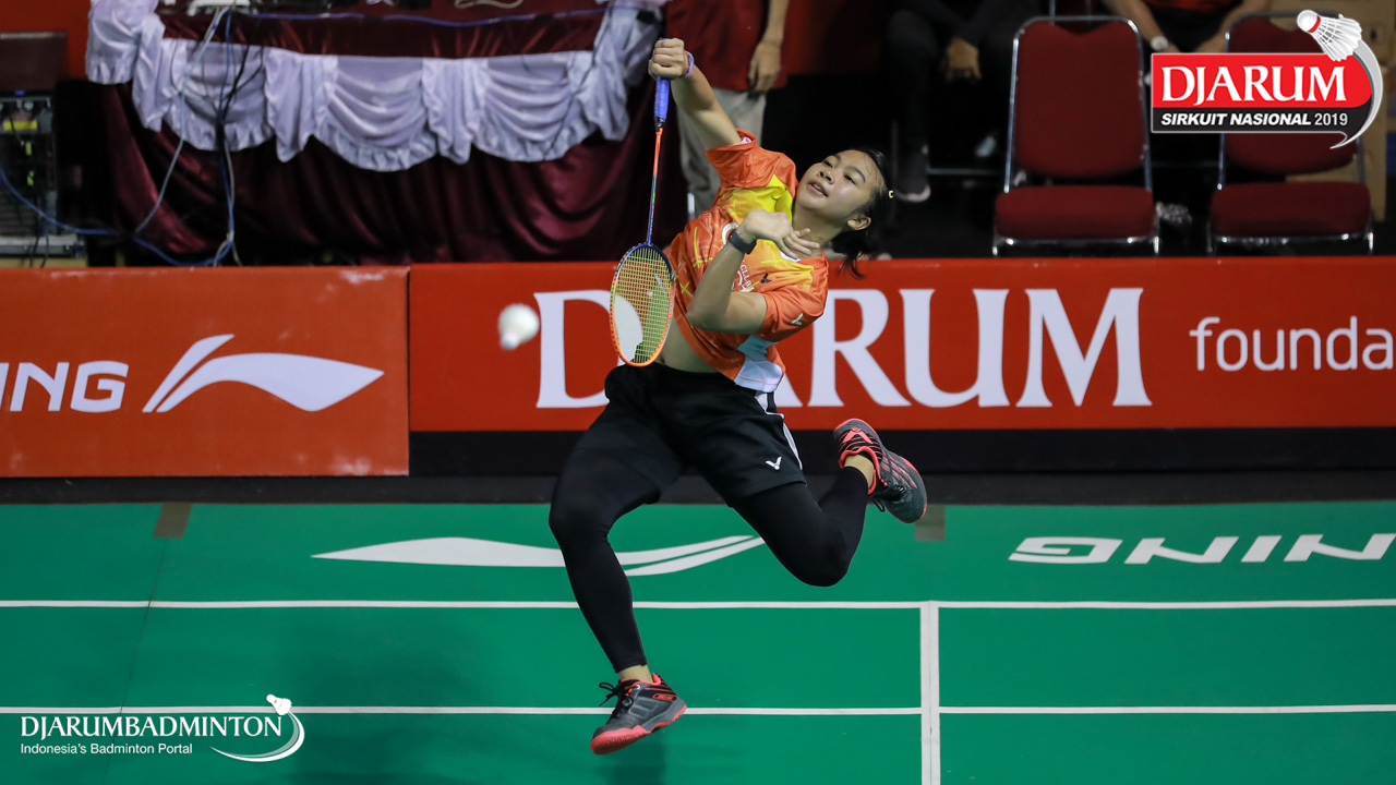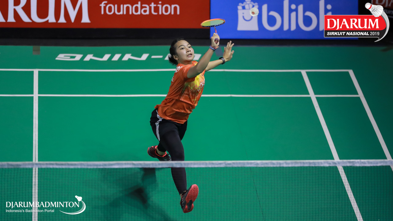 Sheila Dinda Kurniawan (Jaya Raya Jakarta) menggapai shuttlecock